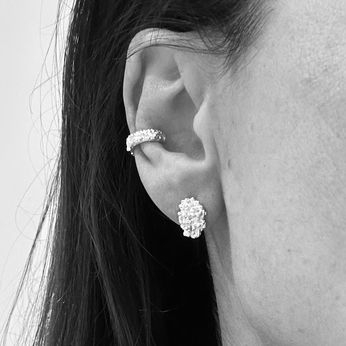 Les boucles d'oreilles "nuages caviar" sont parsemées de petites billes fines et irrégulières et viennent rejoindre l'iconique collection caviar.