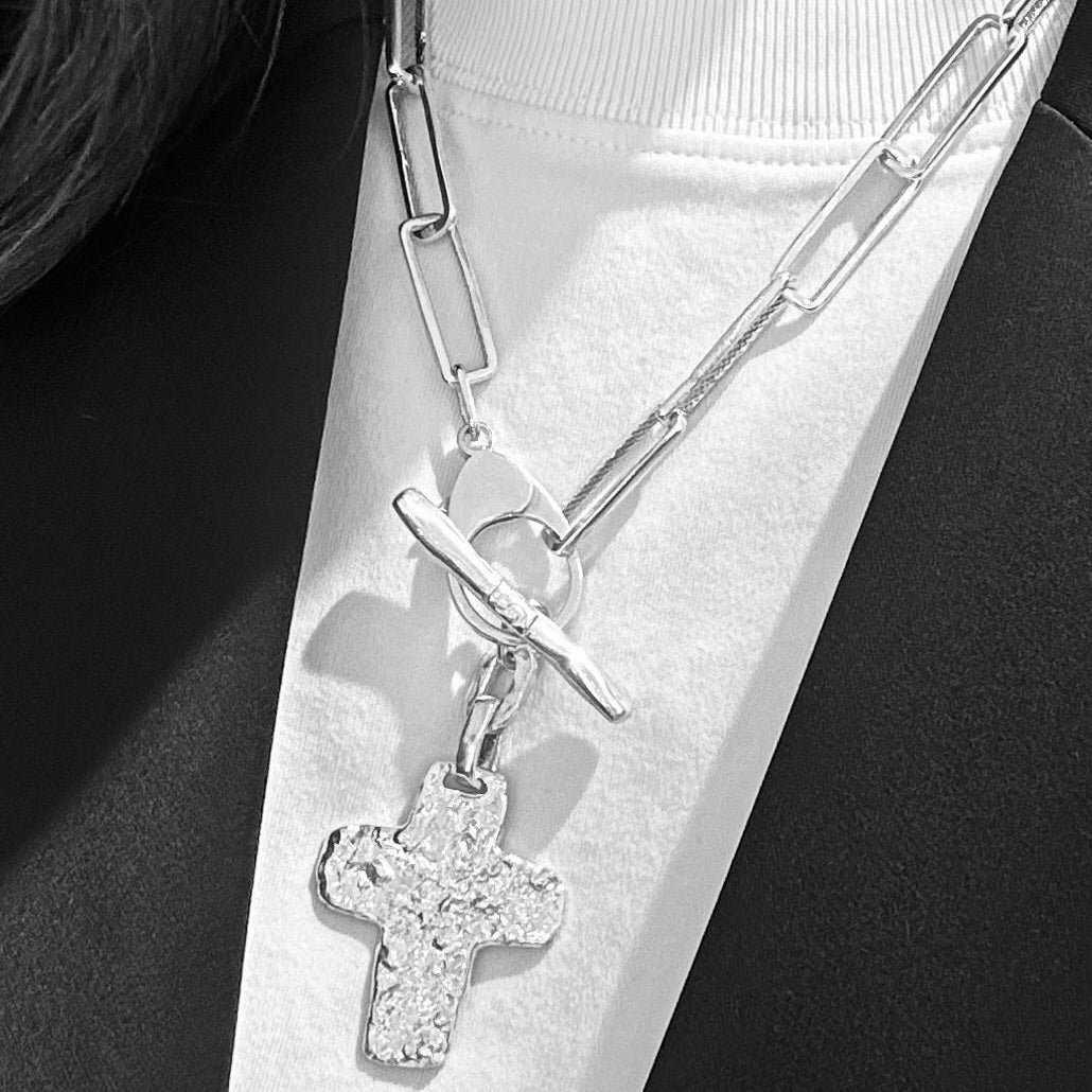 Ce collier est composé d'une grosse chaîne en argent massif dont chaque maillon a été réalisé à la main dans notre atelier.